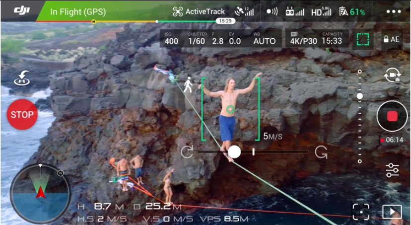 - Active Track / Tap Fly / Way point Drawing / Return to Home. There are some new features on this model including a new technology that allows the users to draw route on the screen whilst locking the altitude, lock in speed and direction. Tapfly allows the user to tap on the screen to smoothly adjust the direction of flight whilst avoiding obstacles. It can also allow tilting the gimbal without changing the direction of flight. Active Track is already featured on both the Phantom 4 and the Mavic Pro that allows the drone to recognise and follow moving objects. The Phantom 4 Pro uses newer algorithms to enable it to recognise more objects, vehicles, animals, and will adjust flight dynamics accordingly. All these automation features allows the user to focus on the shots without worrying about flying. This drone probably has the most automation features than all of the other reviewed drones. The winner is the Phantom 4 Pro with Mavic Pro as runner up.